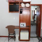 Os apartamentos na categoria LUXO, são amplos, bem decorados, enxoval luxo, equipado com TV 32´ LCD com canais a cabo, cama box, secador de cabelo, espelho “corpo inteiro”, telefone com discagem direta, frigobar, ducha higiênica, ar-condicionado, mesa com duas cadeiras, closet, cofre eletrônico, kit de banho (shampoo, condicionador, touca e sabonetes), acesso a internet sem fio GRATUITO e fechaduras eletrônicas.